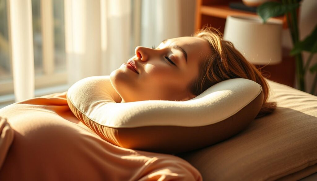 Finding the right pillow is key for comfort and health with a cervical herniated disc. A good pillow supports the neck, reduces pain, and improves sleep. A Pillow for Cervical Herniated Disc can provide the necessary support to help alleviate discomfort and promote better rest. A plush, orthopedic pillow rests against a clean, minimalist backdrop. The pillow is designed with contouring and extra support to cradle the neck and align the spine, alleviating pressure on a cervical herniated disc. The pillow’s soft, hypoallergenic fabric and medium firmness create a comfortable, therapeutic sleeping surface. Warm, diffused lighting illuminates the pillow, accentuating its soothing, therapeutic qualities. The scene exudes a sense of tranquility and restorative rest, inviting the viewer to envision how this pillow could provide relief and support for a cervical herniated disc. Key Takeaways Choosing the right pillow is vital for neck support. Proper sleep can alleviate pain from cervical herniated discs. Look for features that cater to individual comfort and needs. Different types of pillows offer various benefits for neck pain relief. Consulting healthcare professionals can enhance your pillow selection. Understanding Cervical Herniated Discs Cervical herniated discs happen when the soft center of a spinal disc pushes out through a tear. This can make it hard to do everyday things and cause a lot of pain. Knowing the symptoms of cervical herniated disc is key to getting the right treatment. What Causes Cervical Herniated Discs? Many things can lead to cervical herniated discs. These include: Getting older, when discs lose moisture and get less flexible. Getting hurt in an accident or fall that strains the neck too much. Doing the same thing over and over again, wearing down the neck. Symptoms of a Cervical Herniated Disc People with cervical herniated discs might feel different things. These symptoms can be mild or very strong. Some common ones are: Neck pain that might spread to shoulders and arms. Pain in the arm, feeling like it’s burning. Weakness in the arm or hand, making simple tasks hard. Neck muscles feeling sore and tight. Knowing what causes these discs and spotting the symptoms of cervical herniated disc helps get help sooner. This can lead to better results for those dealing with it. https://youtu.be/MJ8ZWJKOVz4 The Role of Sleep Quality in Neck Pain Sleep quality is key to our neck and body health. A good night’s sleep helps our body heal from pain and tension. Studies show that restful sleep speeds up neck pain recovery. Without the right support, neck pain can stick around. This stops our body from moving freely and feeling comfortable. How Sleep Affects Neck Pain and Recovery Sleep is when our body fixes itself. Better sleep means better neck function and less pain. Poor sleep can make muscles stiff and necks misaligned, making pain worse. So, focusing on sleep quality is vital for neck pain recovery. Importance of Pillow Support for Quality Sleep A good pillow keeps the head and neck in line while sleeping. The wrong pillow can strain the neck, making pain worse. The right pillow supports sleep by aligning and cushioning sensitive areas. Choosing the right pillow improves sleep and helps with neck pain recovery. Soft, plush pillow in a serene bedroom setting, designed to provide optimal cervical support for a restful night’s sleep. Delicate lighting casts a warm, cozy glow, highlighting the pillow’s contours and textures. The pillow is positioned on a minimalist wooden headboard, subtly complementing the neutral color palette of the room. Fluffy down filling and a breathable, hypoallergenic cover create a supportive yet comfortable resting surface. The overall scene conveys a sense of tranquility and relaxation, emphasizing the importance of quality sleep for neck pain management. Choosing the Right Pillow for Cervical Herniated Disc Choosing the right pillow is key to managing pain from cervical herniated discs. Features like firmness, height, and shape are important. They can greatly improve your sleep and neck support. Key Features to Look For When picking a pillow, focus on a few important things for good cervical spine support. Look for: Firmness: The pillow should be firm enough to support but not too hard. A medium-firm pillow is usually best. Height: The pillow should keep your neck in its natural curve. You can adjust the height for different sleeping positions. Contouring ability: Choose pillows that fit your neck and head. A cervical spine support pillow helps spread out your weight and reduces pressure points. Types of Pillows Available There are many types of pillows, each with its own benefits for cervical herniated disc sufferers. Here are some popular ones: Orthopedic pillows: Made for neck support, these pillows have a special shape that helps keep your spine aligned. Ergonomic pillows: These pillows are designed for different sleeping positions. They keep your head and neck supported all night. Memory foam pillows: These pillows mold to your body, giving you customized support and relief from pressure. https://youtu.be/WBLmn_jK3L4 Pillow for Cervical Herniated Disc: Key Options Finding the right pillow is key for those with a cervical herniated disc. Different pillows offer special support, making sleep better and helping the neck stay aligned. We’ll look at three main types: orthopedic, ergonomic, and therapeutic pillows. Each one meets different needs, easing neck pain and improving sleep. Orthopedic Pillows An orthopedic pillow keeps the spine aligned. It has a contour design that supports the neck and head. This reduces strain on the cervical spine and helps distribute weight evenly. Users find their sleep quality improves with these pillows. They prevent uncomfortable sleeping positions that can make pain worse. Ergonomic Pillows Ergonomic pillows fit the body’s natural curves. They often use memory foam that molds to the neck and head. Th